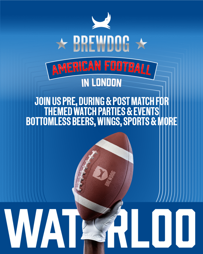 Get ready, American Football fans – Sundays just got wild. BrewDog Waterloo is your game day HQ for the London American Football Games. Whether you’re rolling in early for brunch or staying late for the after-party, we’ve got all the action lined up. Three epic game days, endless beers, and enough wings to keep you fuelled till the final whistle. BOOK NOW