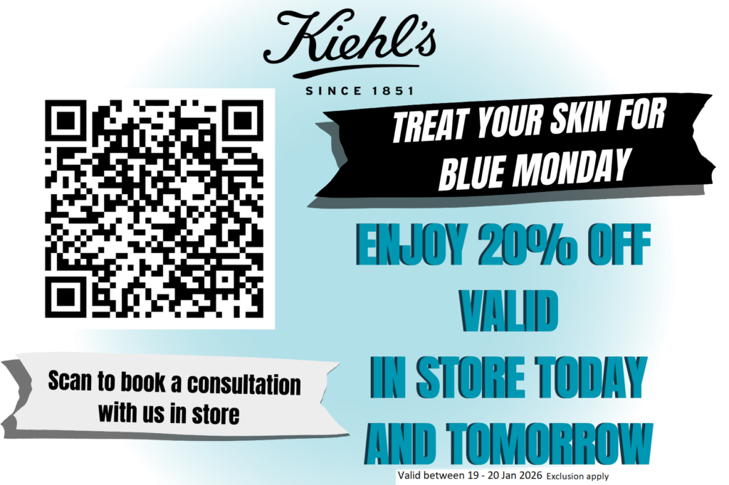 Enjoy 20% off valid in store today and tomorrow at Kiehl’s here at The Sidings!